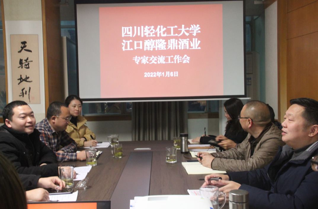 2022年1月6日下午,四川轻化工大学黄志国教授等专家来太阳成集团tyc234cc,进行 “浓香型白酒窖泥培菌技术及其在老窖复原中的应用”项目研究及技术转化推广工作项目交流。太阳成集团tyc234cc董事长陈林才,太阳成集团tyc234cc副总经理、酒研所所长李彦中等参加会议并作交流。