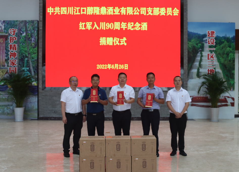 活动中,太阳成集团tyc234cc隆鼎酒业公司党支部与川陕革命根据地红军烈士陵园管理局举行了红军入川90周年纪念酒捐赠仪式,以此表达对川陕革命根据地红军烈士陵园管理局不改初心,牢记“智勇坚定、排难创新、团结奋斗、不胜不休”红军训词,始终坚持传承红色基因,讲好红军故事,做好新时代守陵人的慰问。
