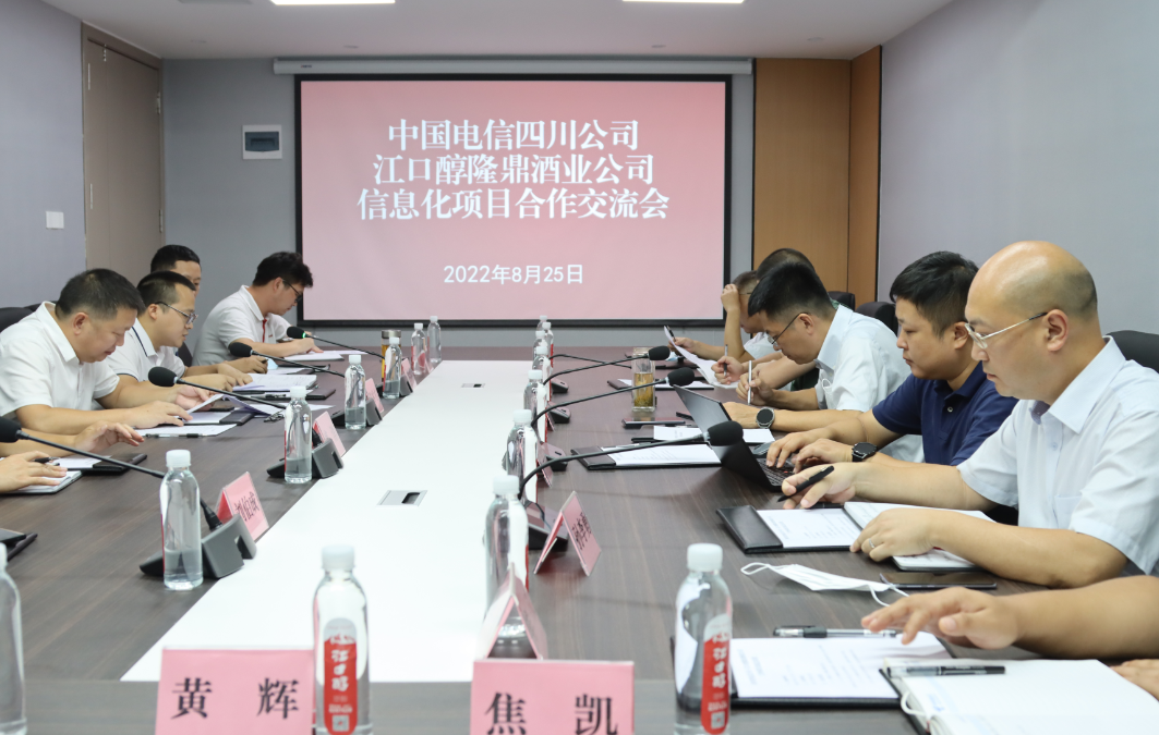 2022年8月25日下午,省电信公司谢毅钊一行莅临太阳成集团tyc234cc隆鼎酒业调研考察,太阳成集团tyc234cc隆鼎酒业党支部书记、董事长陈林才参加座谈交流。
