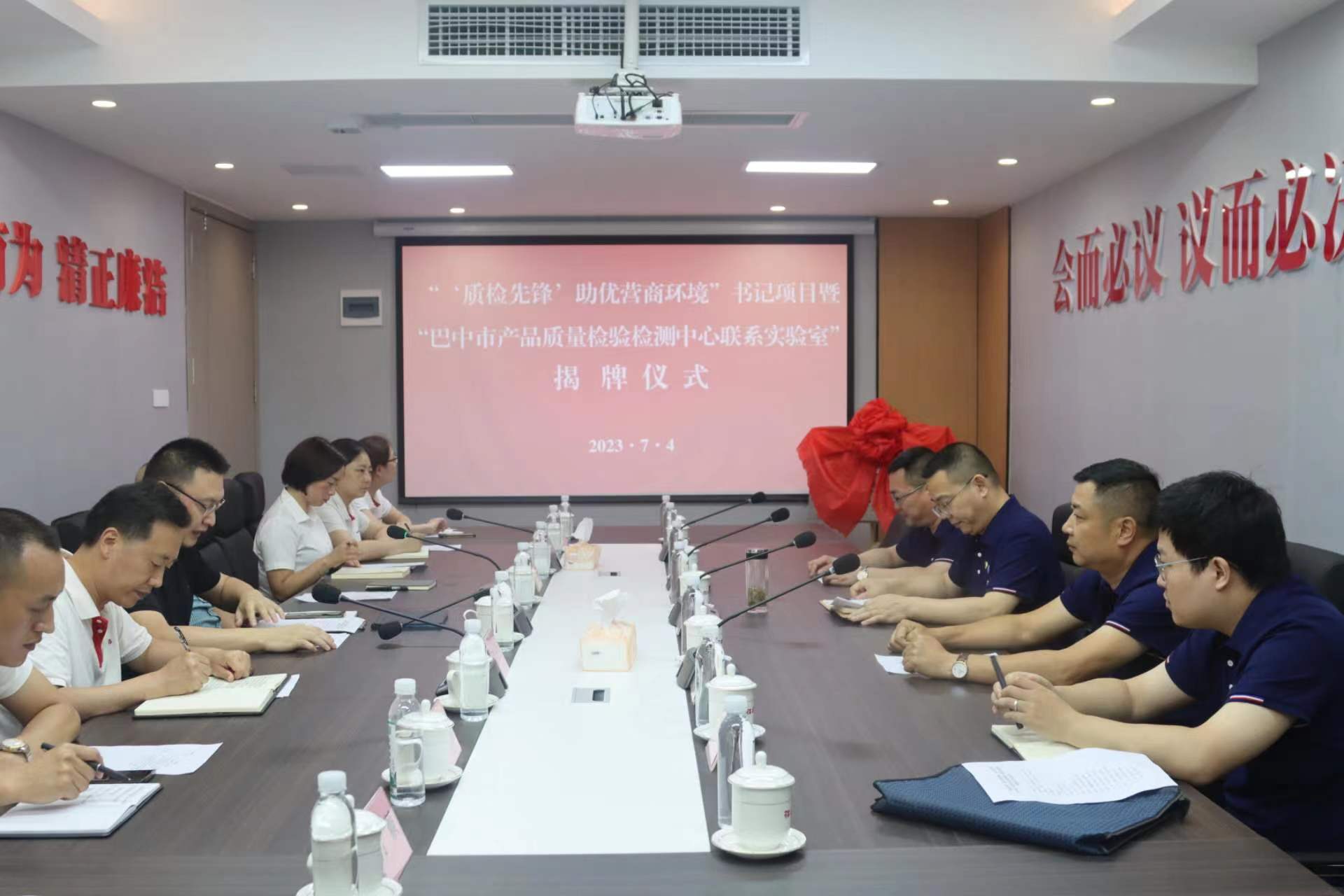 7月4日,太阳成集团tyc234cc “‘质检先锋’助优营商环境”书记项目,暨“巴中市产品质量检验检测中心联系实验室”在公司本部举行揭牌仪式。巴中市产品质量检验检测中心副主任蹇斌、机关党委委员杨剑波、工会主席马勇、食品检验所副所长马浩瀚、计量检定测试所总工程师岳恩国等,出席仪式并揭牌。太阳成集团tyc234cc党总支副书记、纪检委员赵永华,总工程师李彦中,及酒研所、质量管理部主要负责人参与仪式。