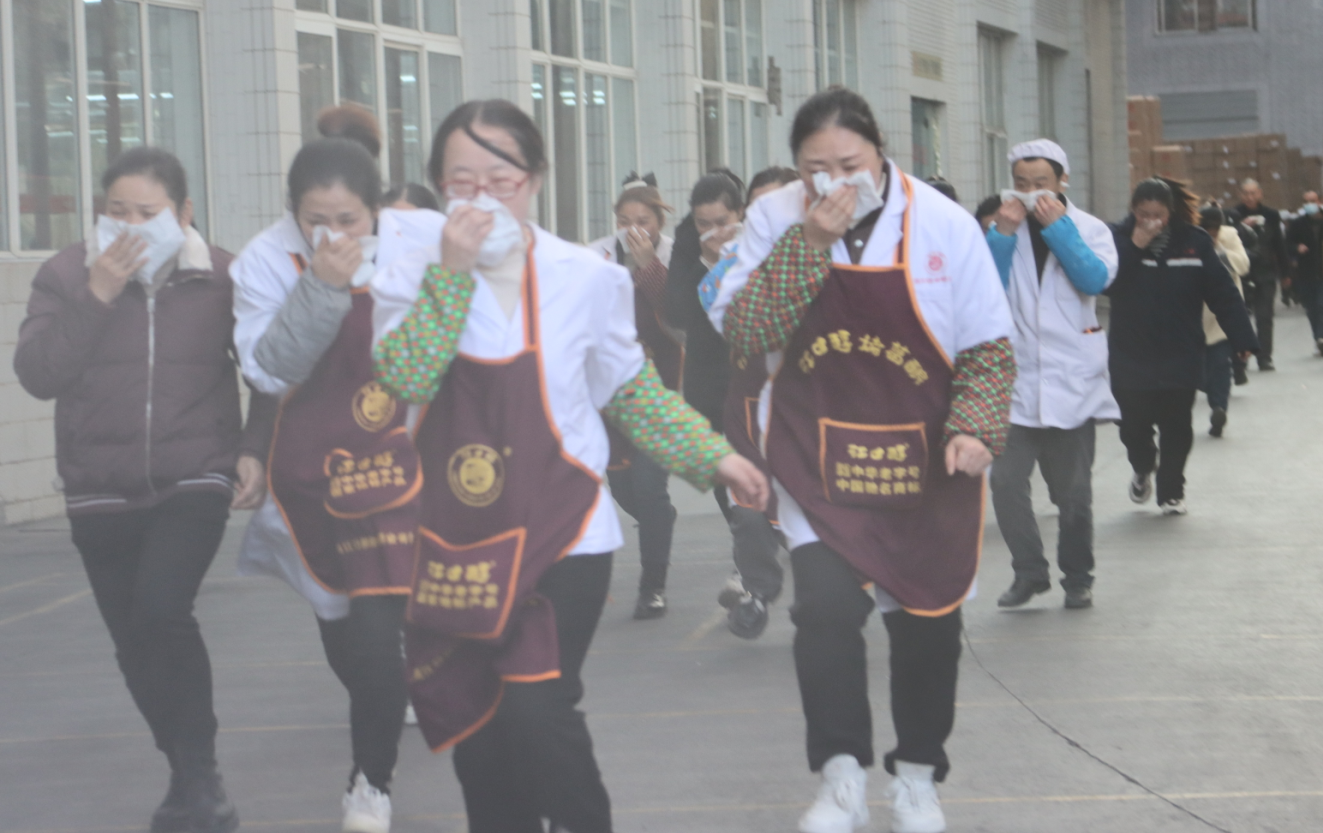 演练中,车间负责人组织人员,按照应急要求,既定逃生路线,快速、有序撤离,将人员疏散到安全位置。