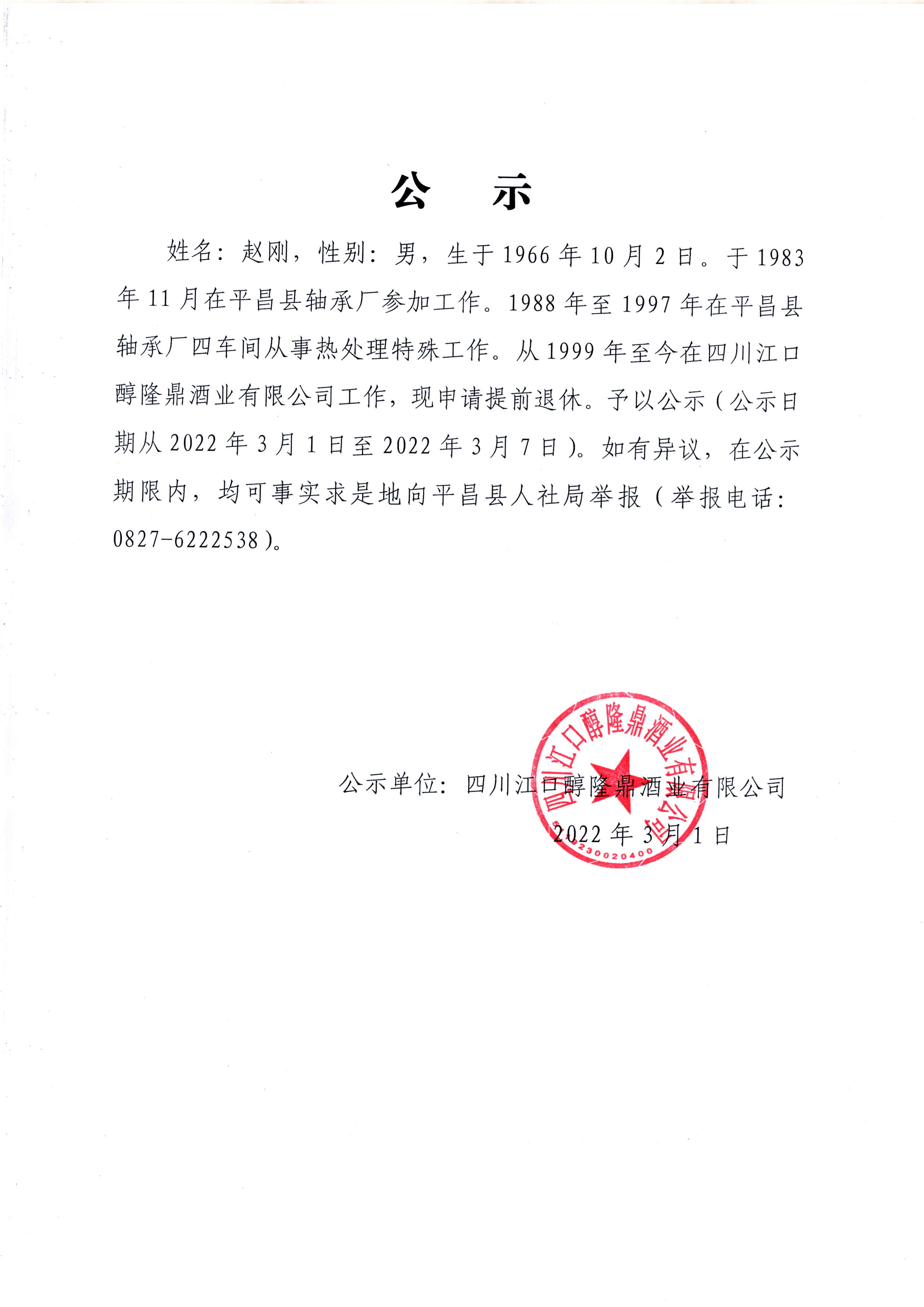 退休人员公示
